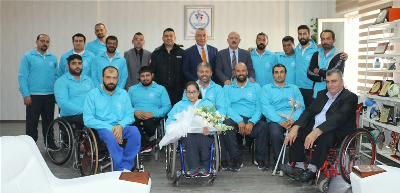 Antalya Büyükşehir Belediyesi Asat Spor Kulübü Tekerlekli Sandalye Basketbol Takımı 3 Aralık Dünya Engelliler Günü etkinilikleri kapsamında Antalya Gençlik Hizmetleri ve Spor İl Müdürü Doç.Dr.Burhanettin Hacıcaferoğlu’nu makamında ziyaret etti.